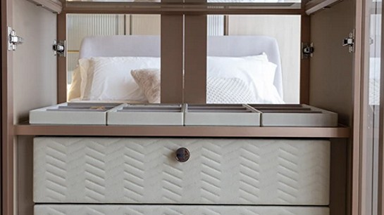 O resultado são closets planejados que se adaptam a diferentes propostas de interiores, do clássico ao contemporâneo, sempre com um toque de modernidade. Além disso, texturas sutis e superfícies refinadas garantem uma experiência tátil mais agradável, elevando o closet de um simples espaço de organização a um ambiente que transmite conforto e sofisticação.