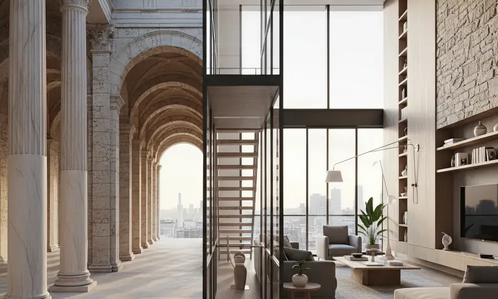 No design de interiores, quase tudo nasce de alguma referência clássica. Simetria, proporção, colunas, arcos, texturas naturais e ornamentações discretas seguem aparecendo em versões atualizadas, mais leves e sofisticadas. Esse diálogo entre épocas é o que mantém os projetos equilibrados, elegantes e verdadeiramente atemporais.